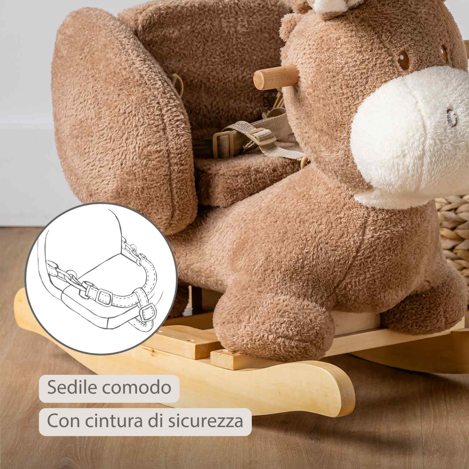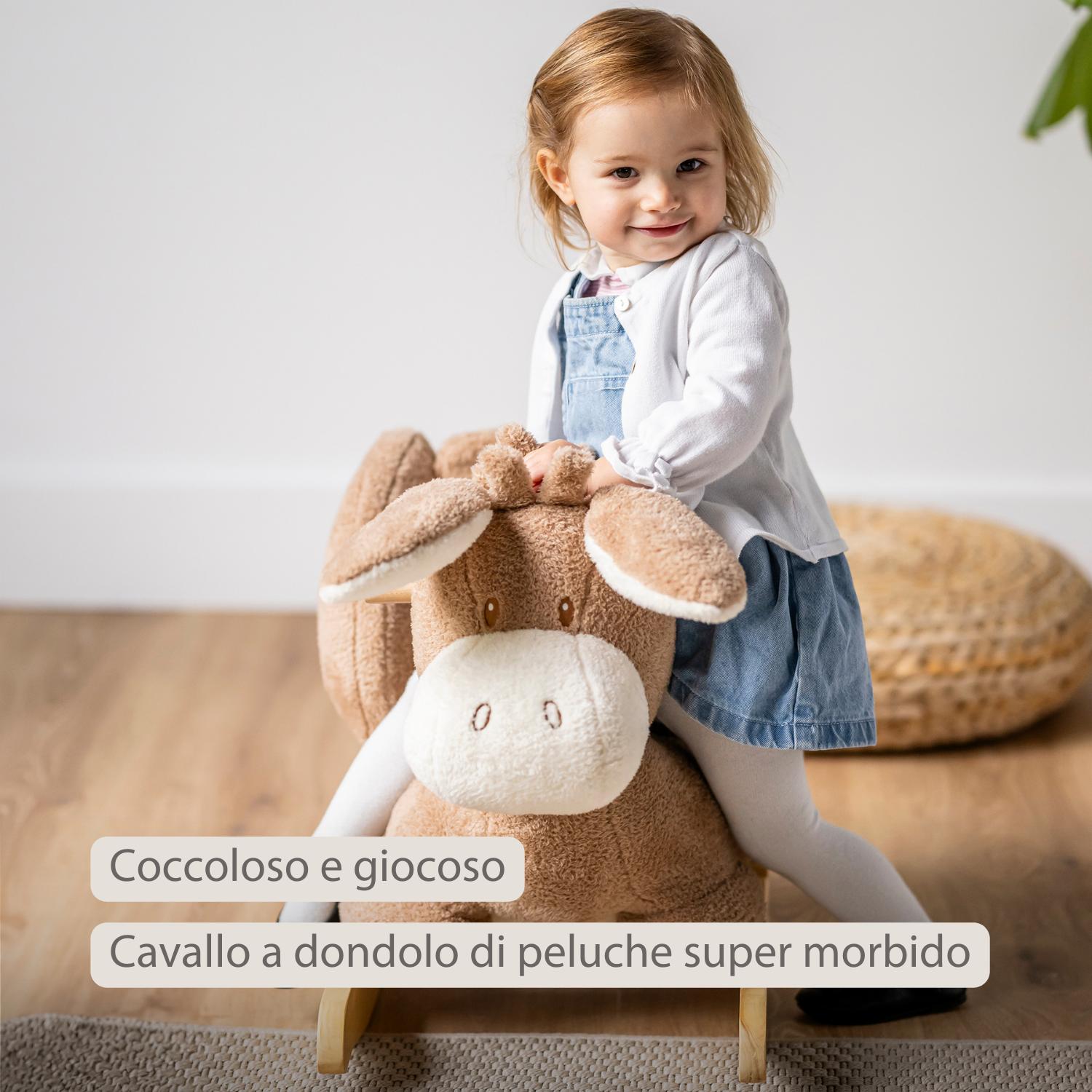 Scopri il divertimento del cavallo a dondolo Nattou Teddy asino: un peluche irresistibile che offre ore di gioco. Con design morbido beige cattura subito l’immaginazione del bambino. Il sedile comodo con cintura di sicurezza e le robuste maniglie in legno garantiscono sicurezza e presa, permettendo al bambino di sviluppare equilibrio e motricità giocando.