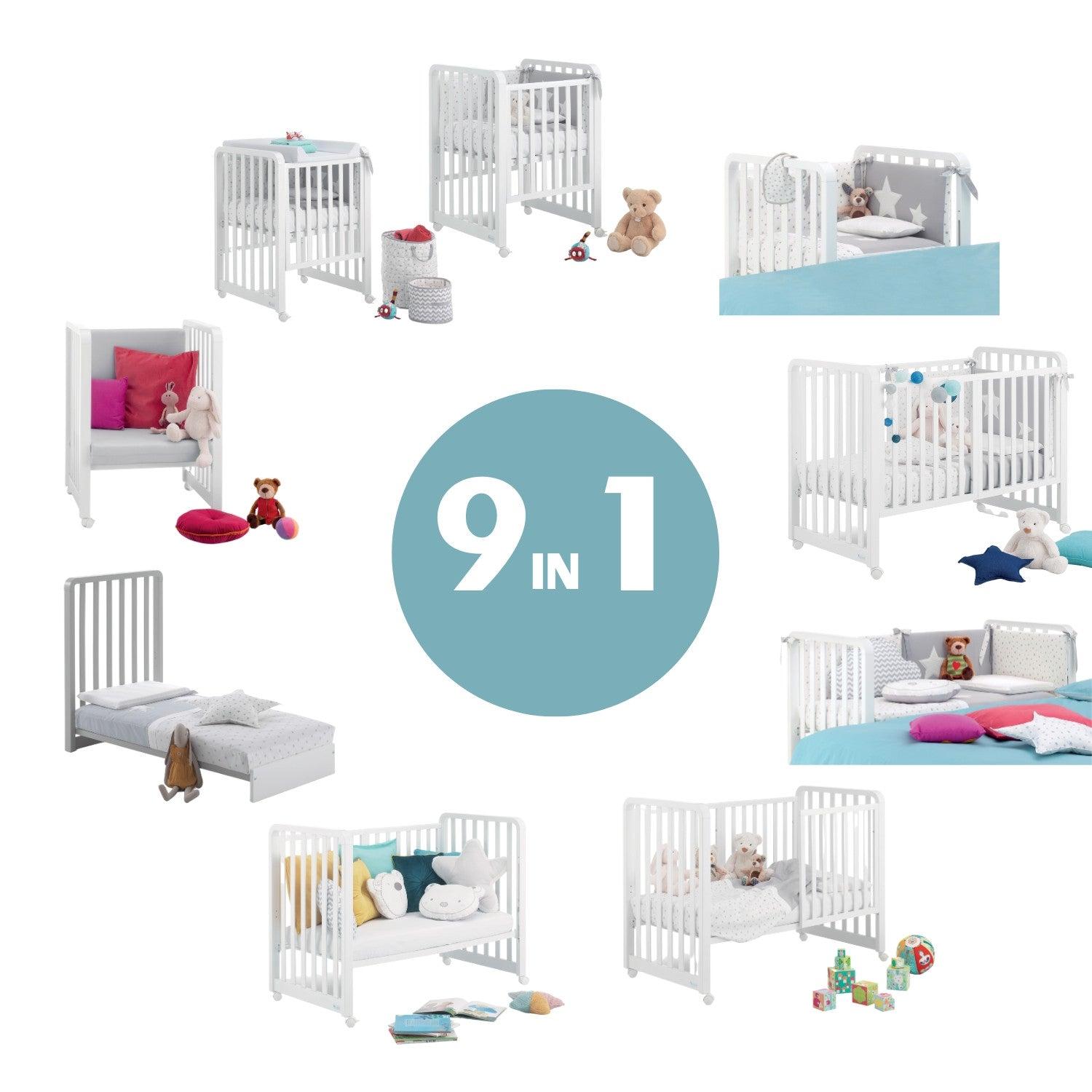 Un unico prodotto che cresce e accompagna il tuo bambino da 0 a 3 anni. Con ben nove specifiche funzioni, da culla a divanetto in un un esclusivo articolo senza il bisogno di ulteriori e costosi accessori da acquistare in un secondo tempo, completo di materasso e tessile con paracolpi componibile per entrambe le configurazioni.