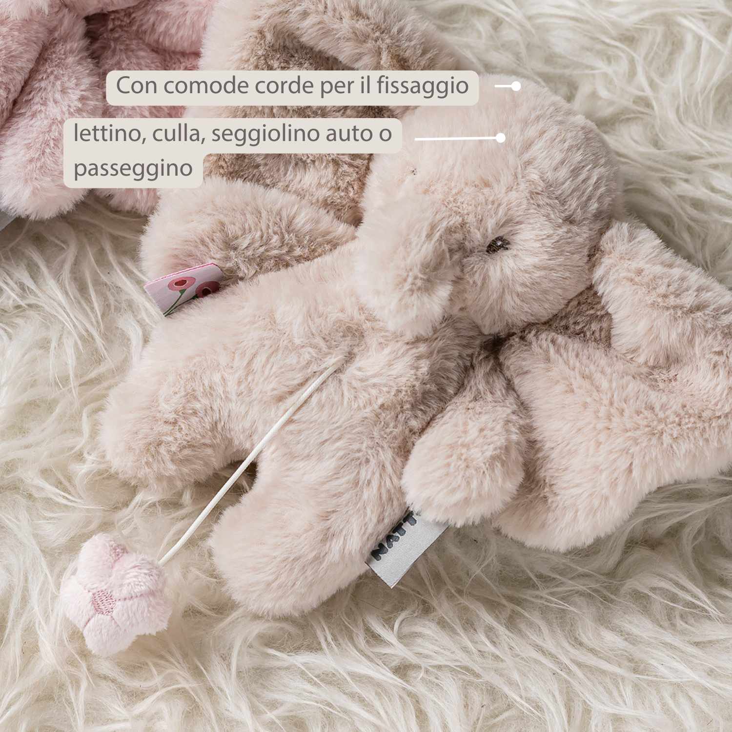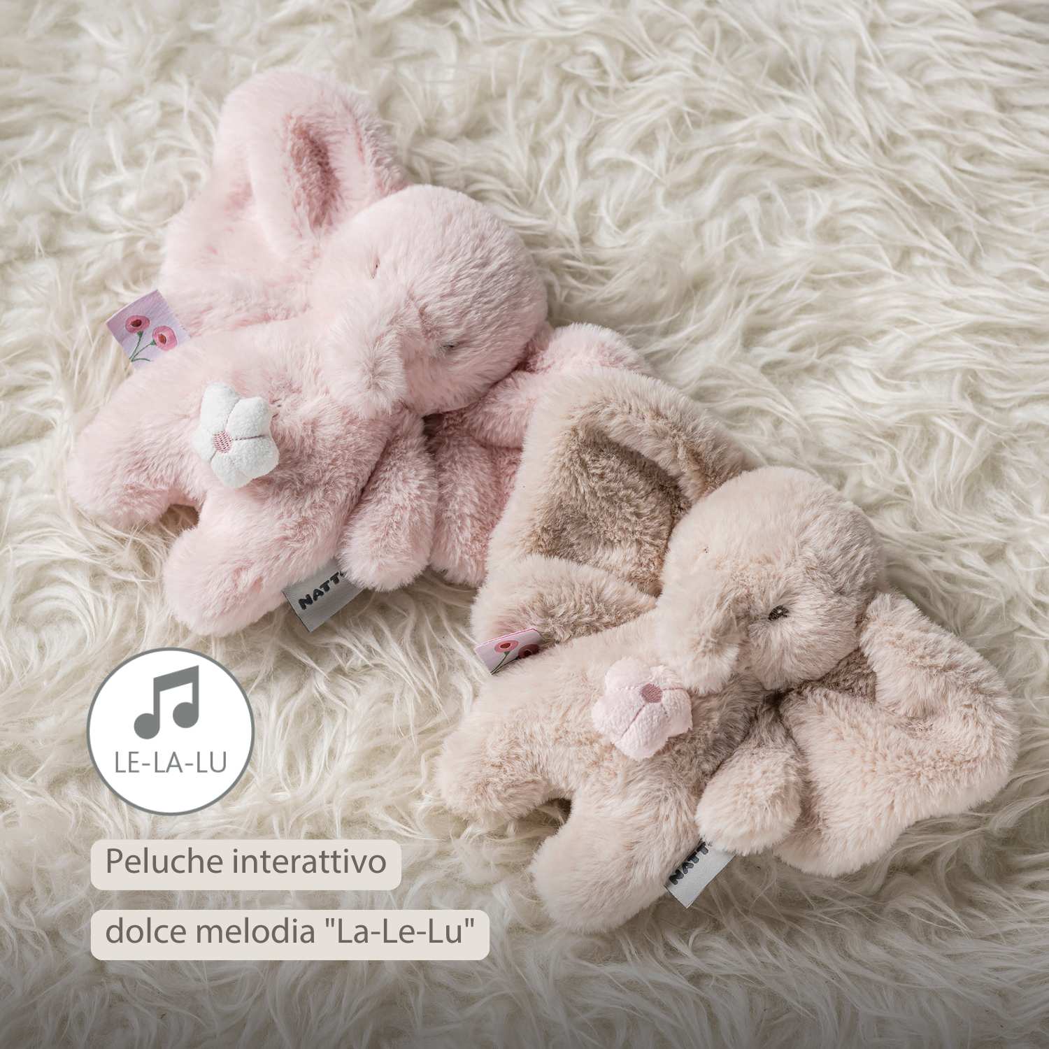 Questo dolce mini peluche musicale di Nattou a forma di piccolo elefante color sabbia è il compagno perfetto per il tuo bambino. Tirando il morbido fiorellino si attiva una rilassante melodia “La-Le-Lu” che aiuta il tuo bimbo a distendersi e ad addormentarsi serenamente. Grazie al formato compatto, questo tenero carillon portatile può essere portato ovunque con facilità, mentre il soffice tessuto in peluche invita a coccolarlo. Con le pratiche cordicelle lo puoi fissare facilmente al lettino, alla culla, al seggiolino auto o al passeggino. Un regalo per neonati che unisce conforto e divertimento in un unico peluche adorabile.
