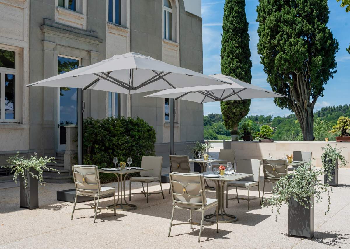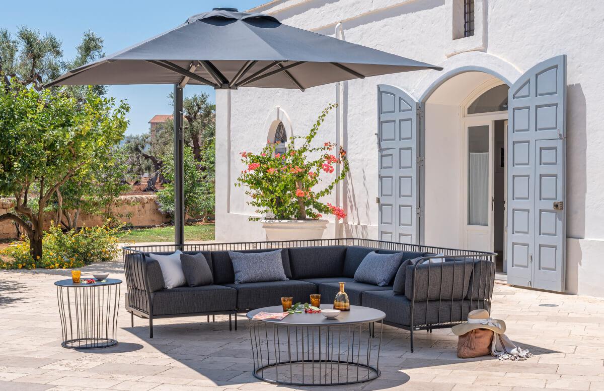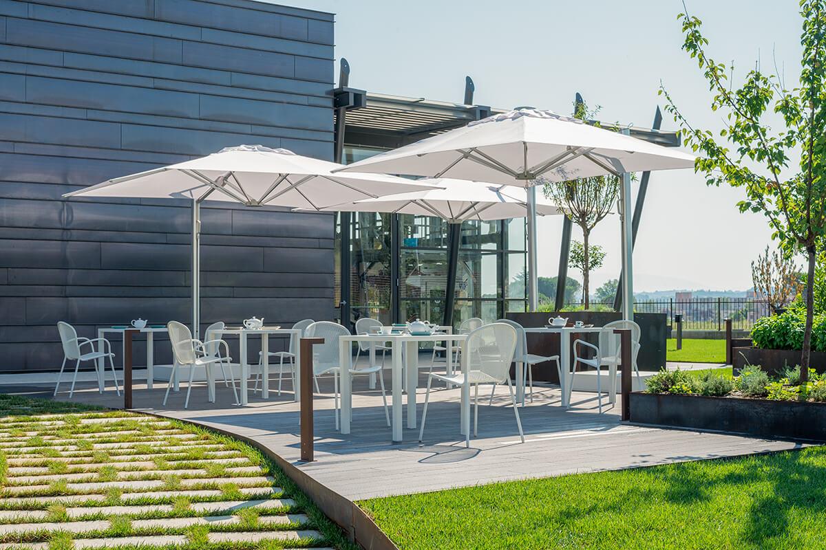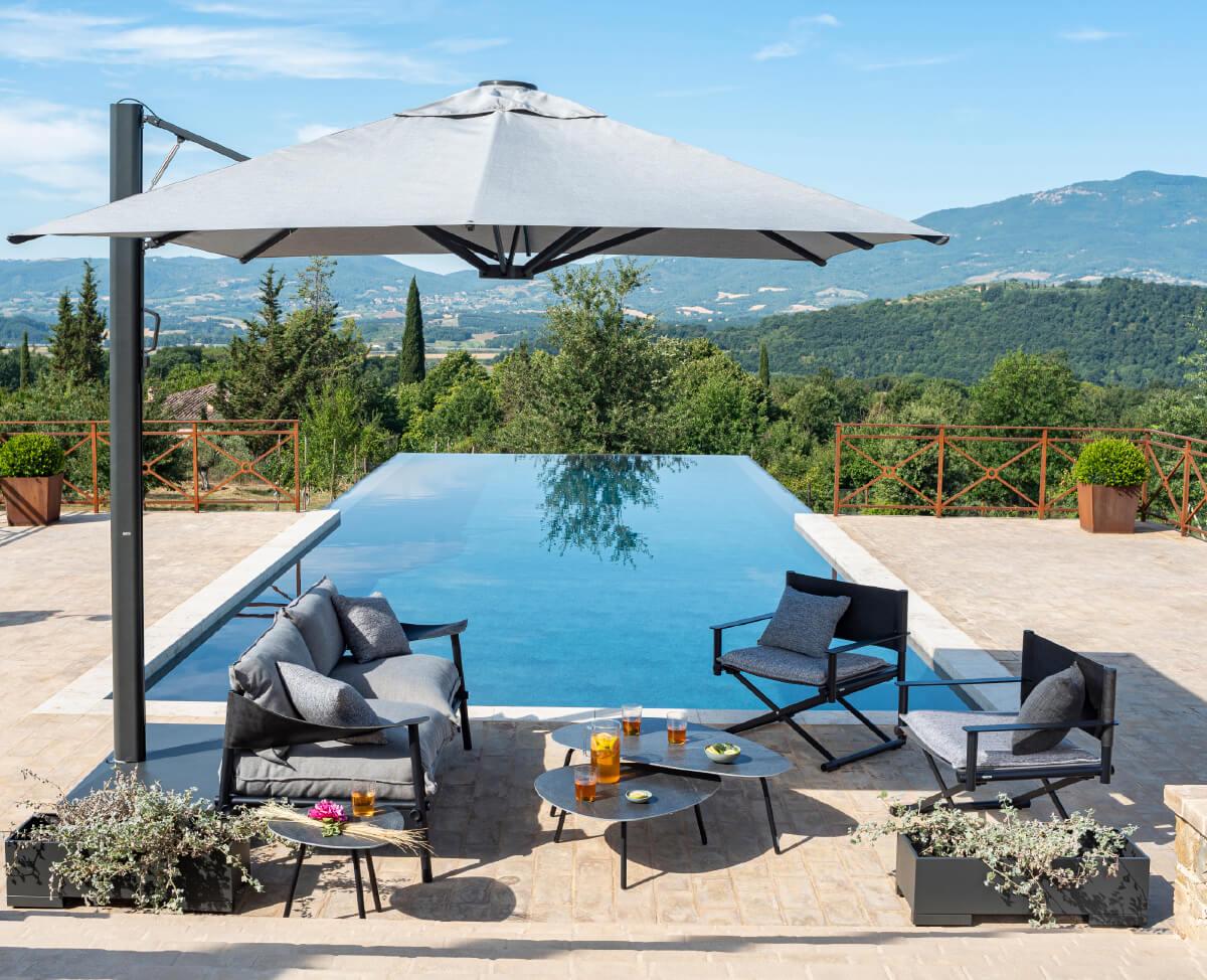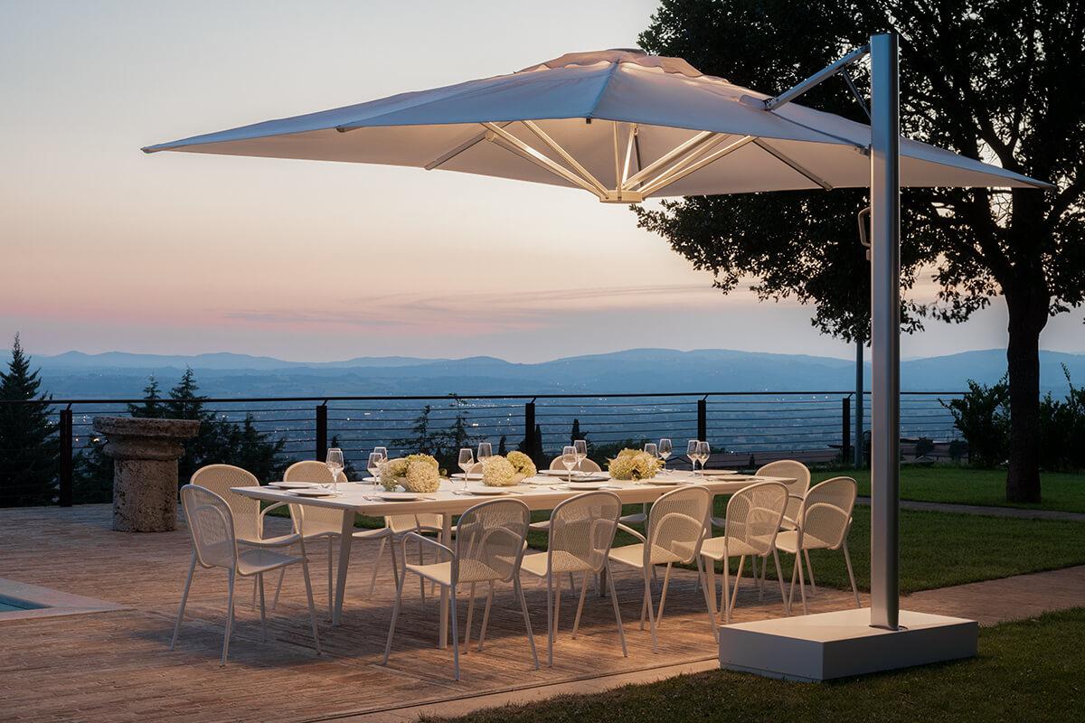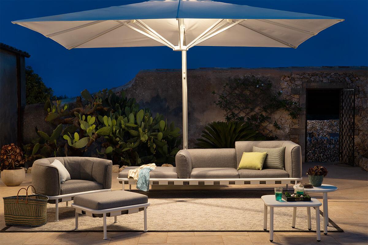 Trevi, progettato da EMU D&S Lab, è l’ombrellone ideale per creare spazi ombreggiati e protetti, sia in ambito contract che privato. Integra un sistema di illuminazione LED dimmerabile, regolabile da remoto, perfetto anche per le serate all’aperto.