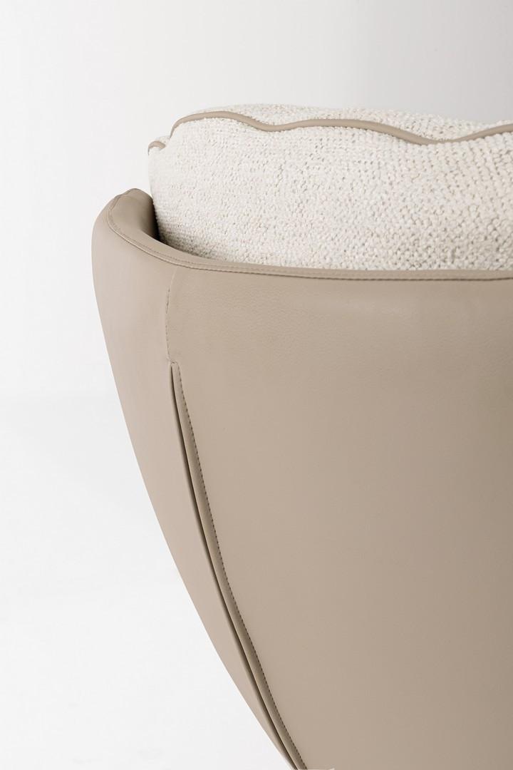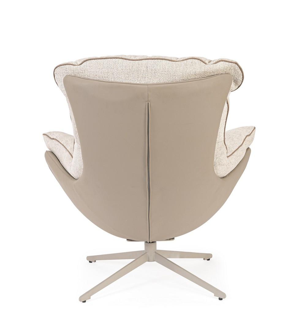 Struttura in acciaio e compensato rivestita in similpelle, cuscino sfoderabile in poliestere densita' imbottitura in schiuma poliuretanica e cotone pp 22kg/m3. gambe in acciaio verniciato a polvere e seduta girevole 360°. da assemblare.