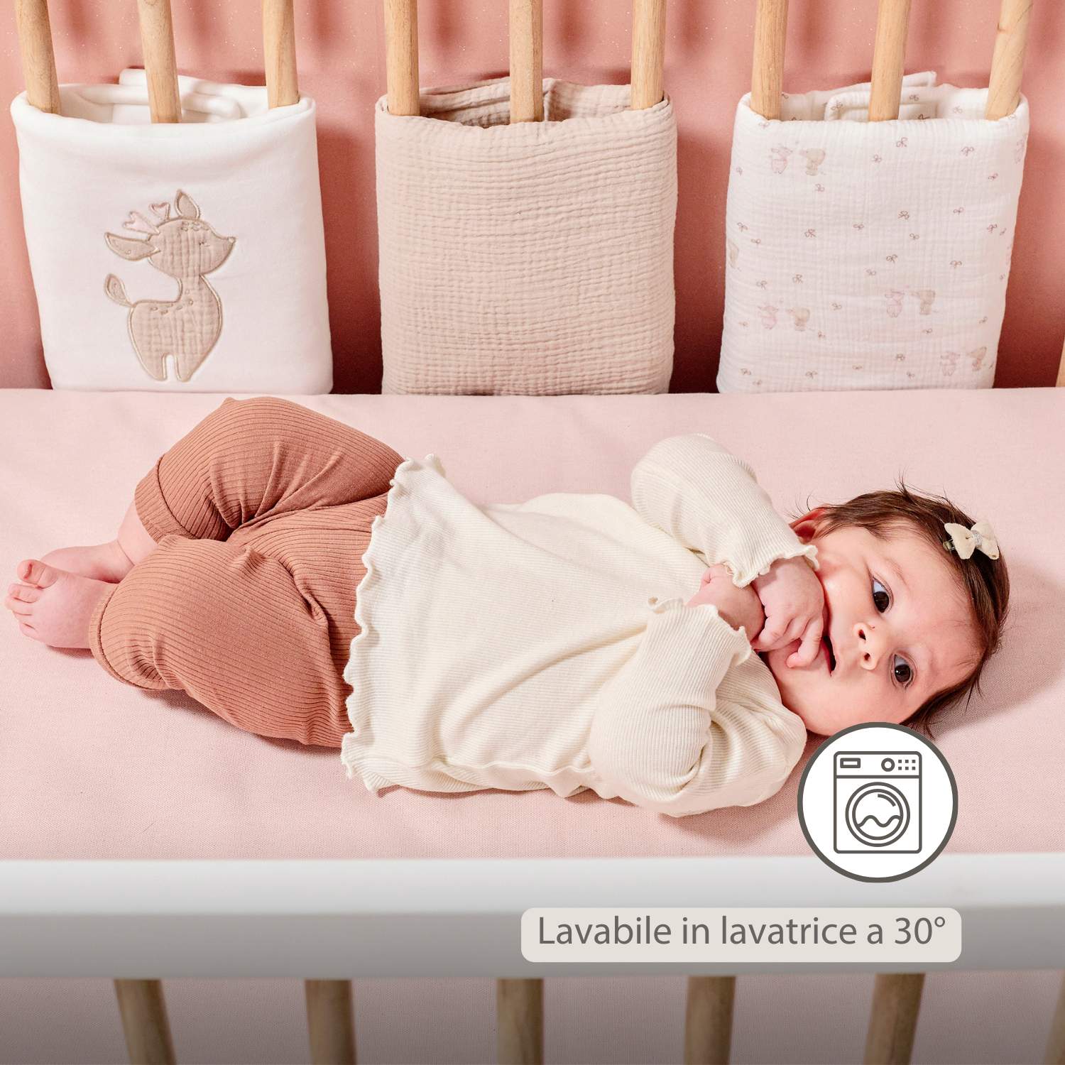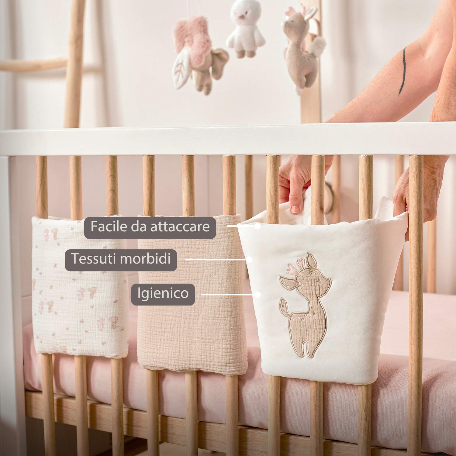 Il set di paracolpi per lettino Nattou crea un ambiente di sonno sicuro e accogliente per il tuo bambino. Questi morbidi paracolpi proteggono il piccolo dagli urti contro le sbarre e garantiscono un sonno tranquillo e confortevole. Grazie al fissaggio semplice con velcro rimangono saldamente in posizione. Un accessorio indispensabile per la cameretta che combina sicurezza e protezione – ideale per genitori che vogliono far dormire il bambino senza preoccupazioni.