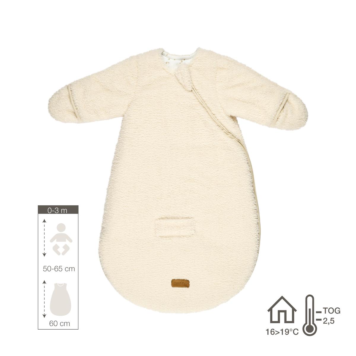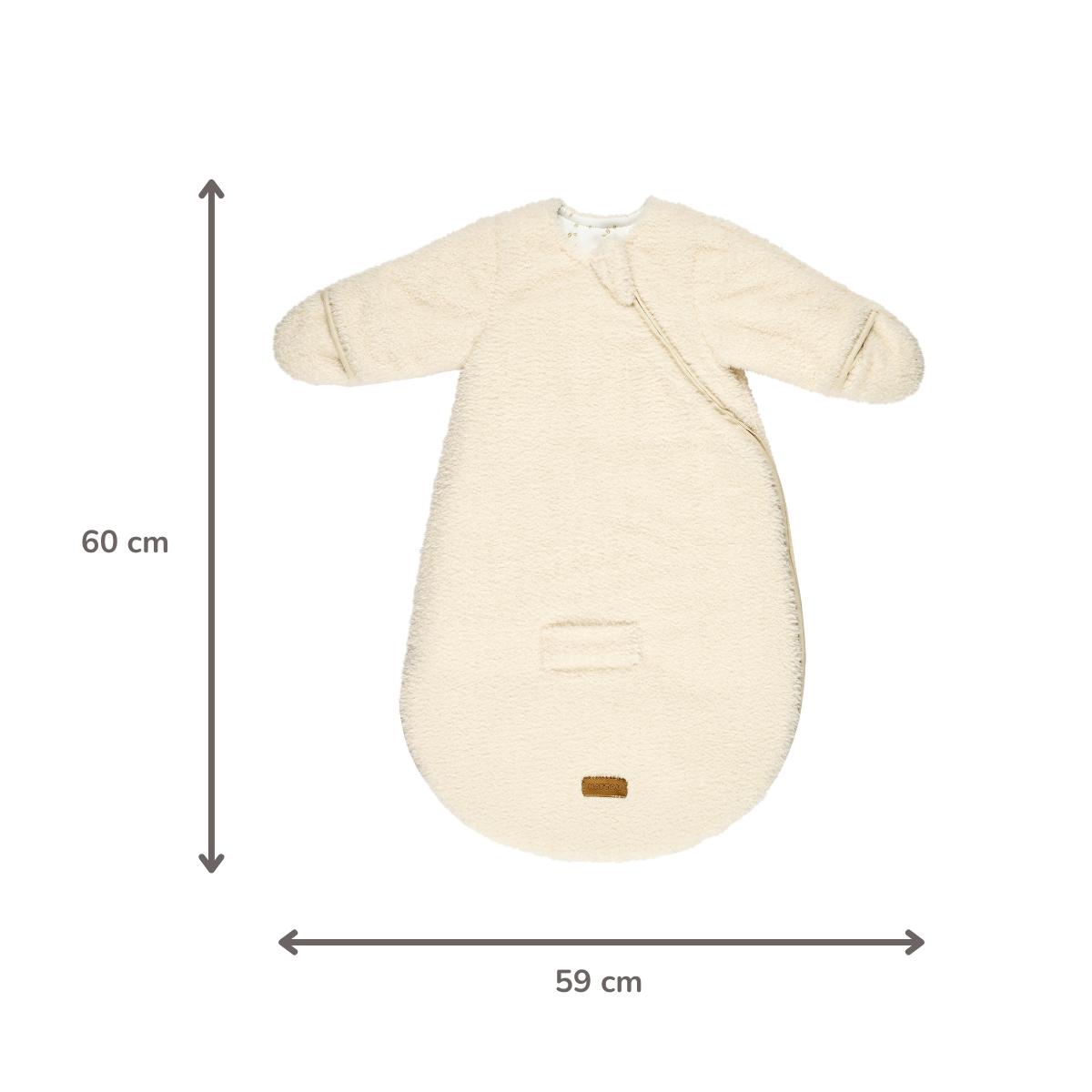 Il sacco nanna teddy Nattou in ecru da 60 cm con maniche e guanti offre al bambino una sensazione morbida e sicura durante il sonno. Il tessuto esterno ultramorbido in teddy con fodera in cotone garantisce buona traspirabilità e comfort. Con TOG 2,5 è ideale a temperature tra 16 e 20 °C. La cerniera dal basso verso l’alto permette di cambiare facilmente il pannolino o lavare il sacco. Con vestibilità ampia e apertura per imbracatura, è comodo e funzionale anche in auto.