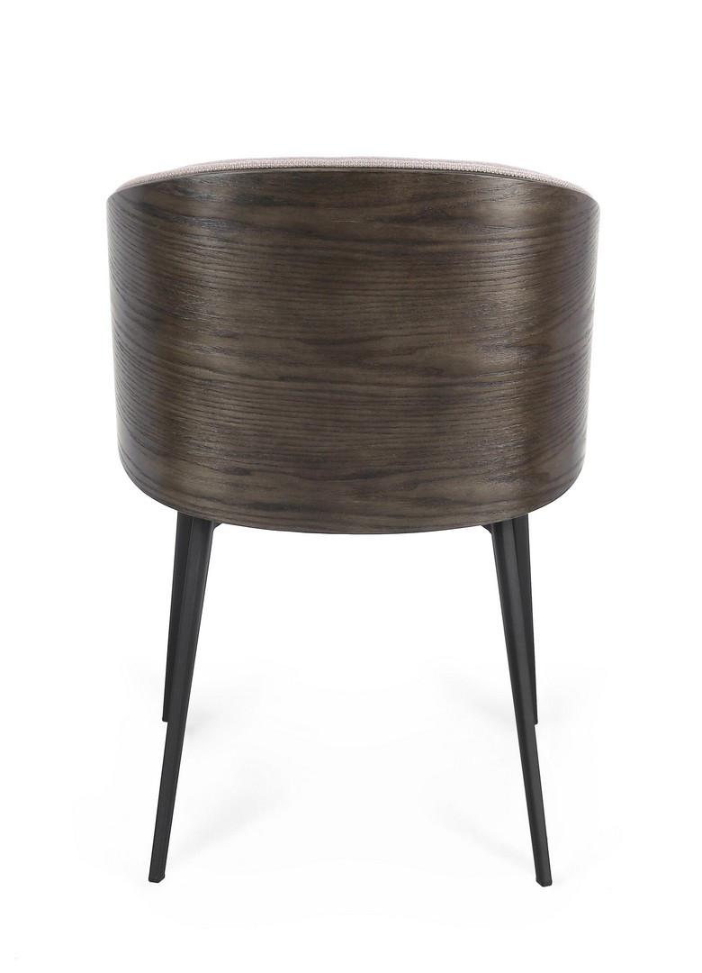 Seduta e schienale in compensato. schienale impiallacciato in legno di frassino. rivestimento in 100% poliestere. gambe in acciaio verniciate a polvere epossidica. gambe da assemblare.