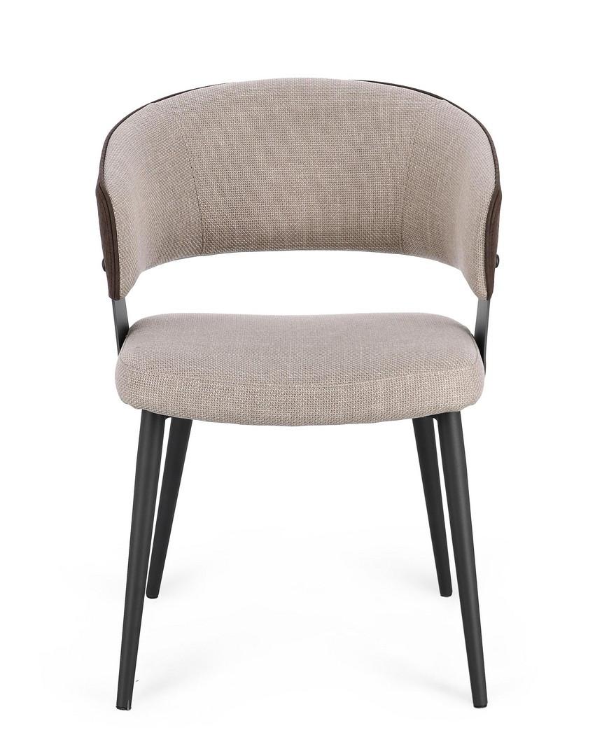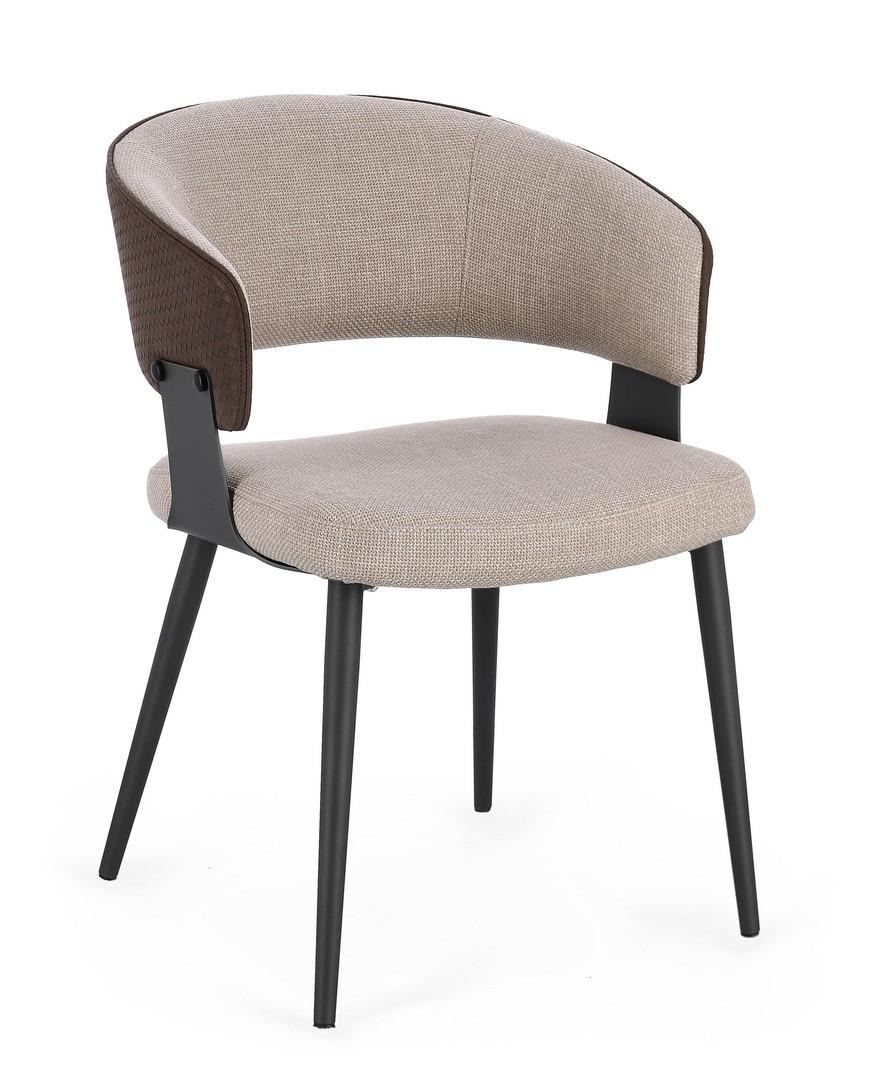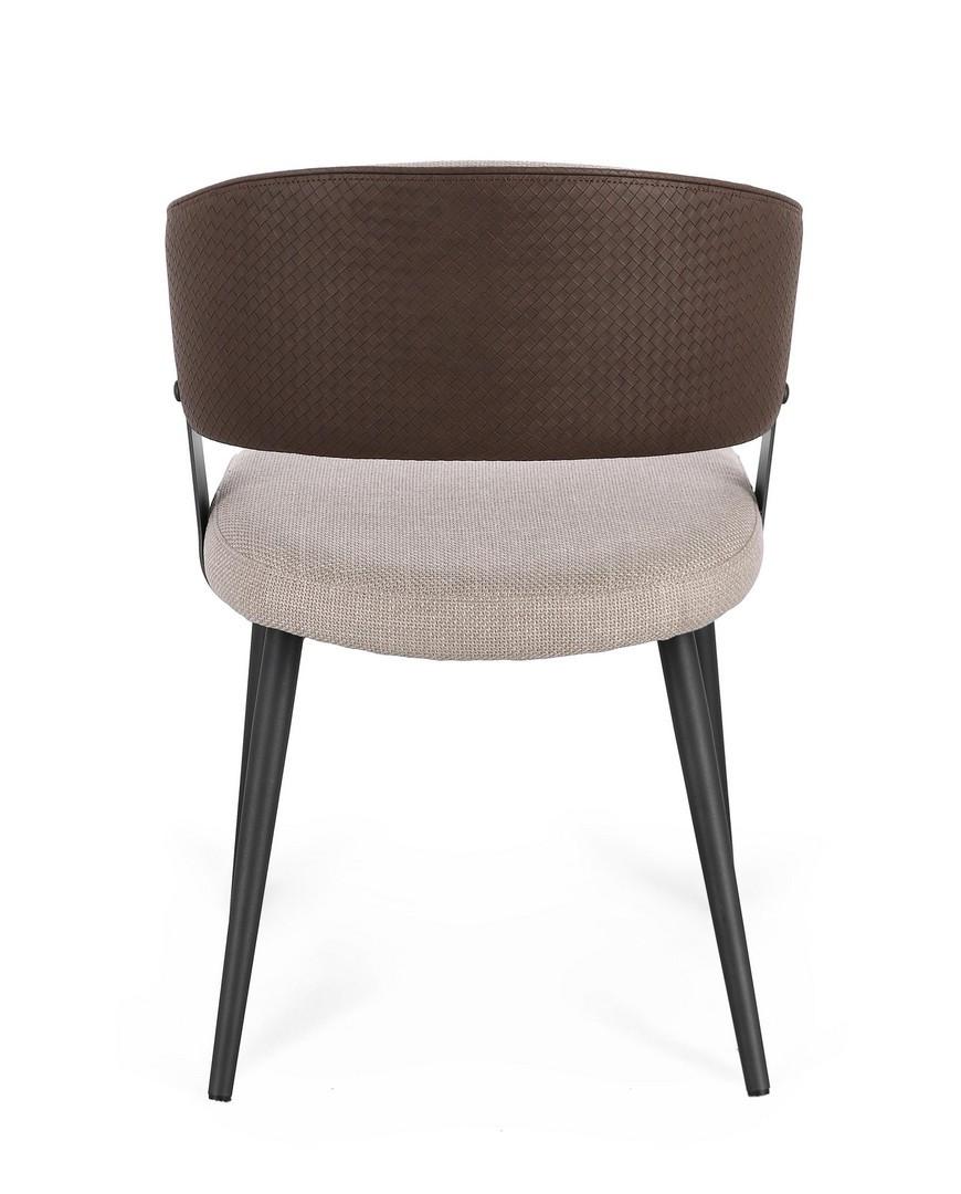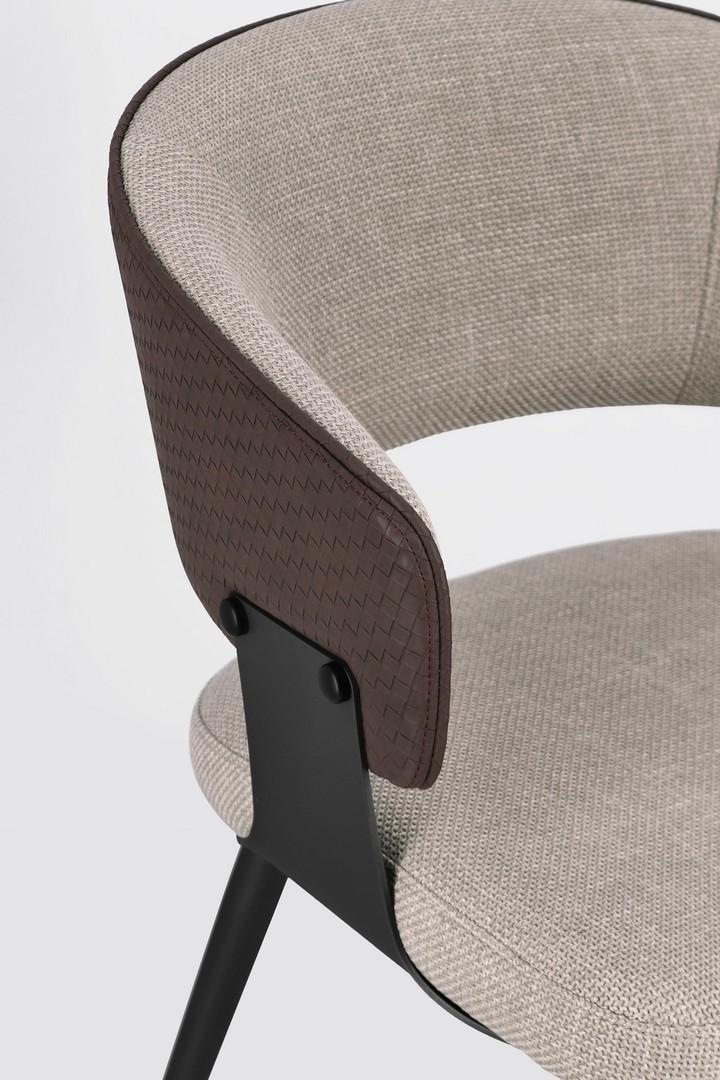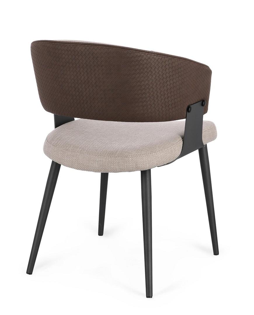 Struttura e gambe in acciaio al carbonio verniciato a polvere epossidica. seduta in compensato con imbottitura in schiuma poliuretanica densita' 35kg/m3. seduta e frontale schienale con rivestimento in poliestere con lavorazione intrecciata, parte posteriore in similpelle (pu) ad alta qualita'. gambe da assemblare.