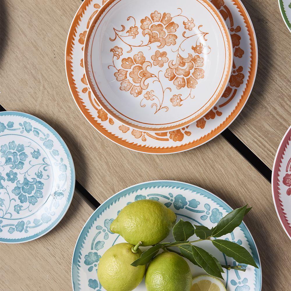 Realizzati in porcellana decorata, questi piatti sono pratici e funzionali, essendo lavabili in lavastoviglie e adatti per l'uso nel microonde. La loro versatilità li rende adatti per ogni occasione, dalla cena informale a quella più elegante.