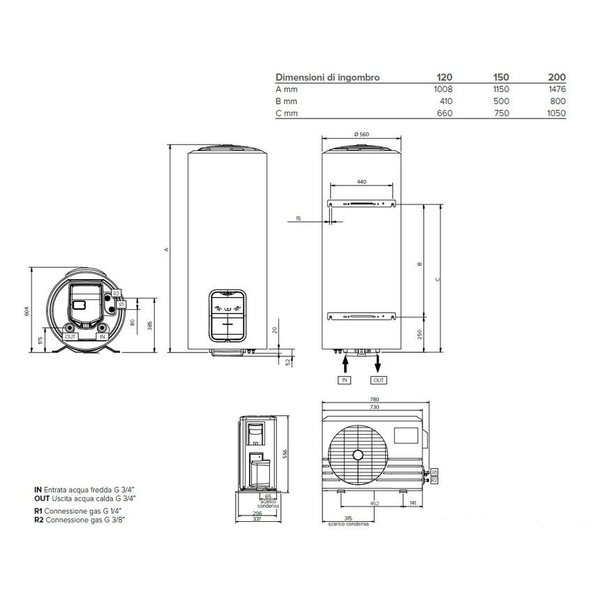NUOS SPLIT INVERTER WIFI LT120, uno scaldacqua a pompa di calore progettato per garantire prestazioni elevate e un comfort ottimale. Con un design verticale e una capacità di accumulo di 120 litri, è ideale per soddisfare le esigenze di acqua calda in ambienti interni.