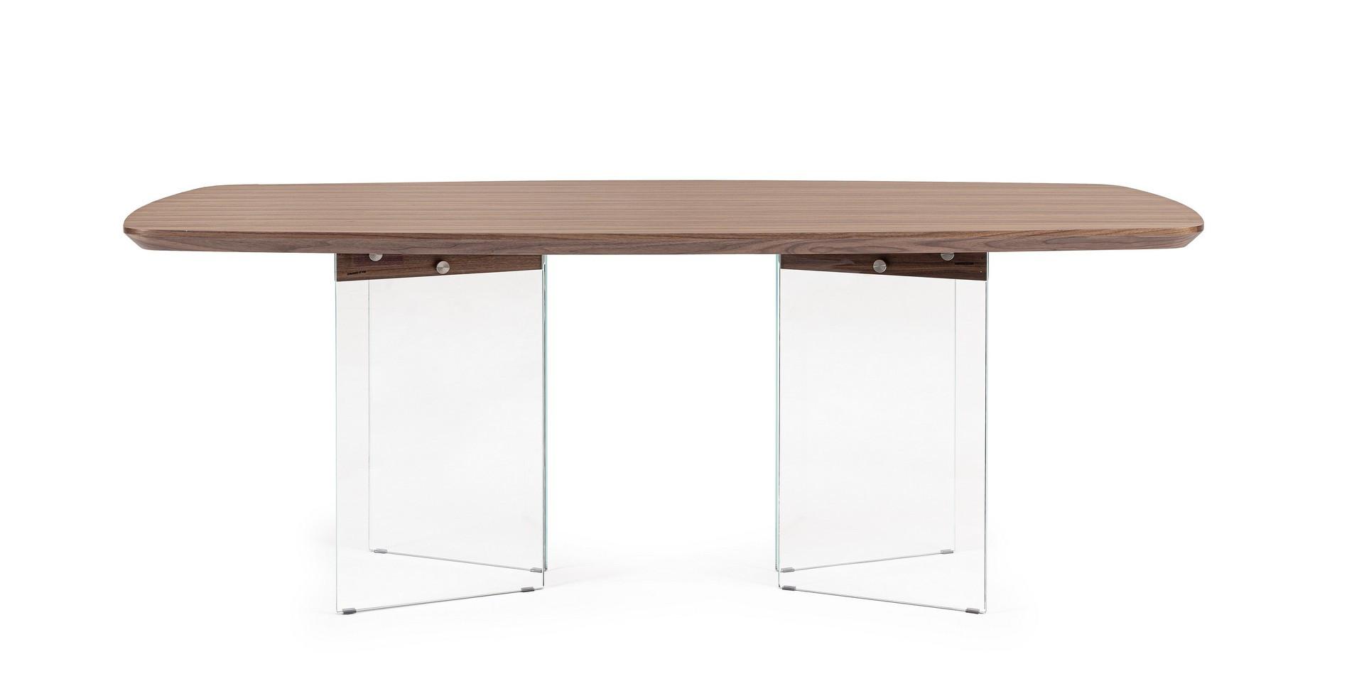 Piano in mdf impiallacciato legno di noce. finitura con vernice a base di acqua. gambe in vetro temperato ("super bianco"). gambe da assemblare.