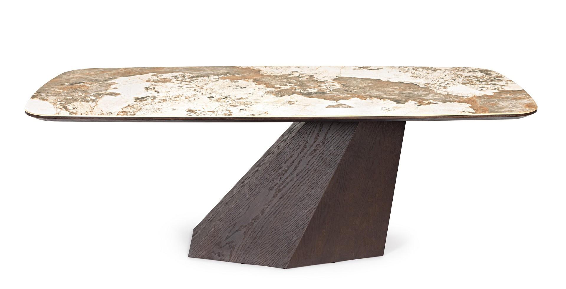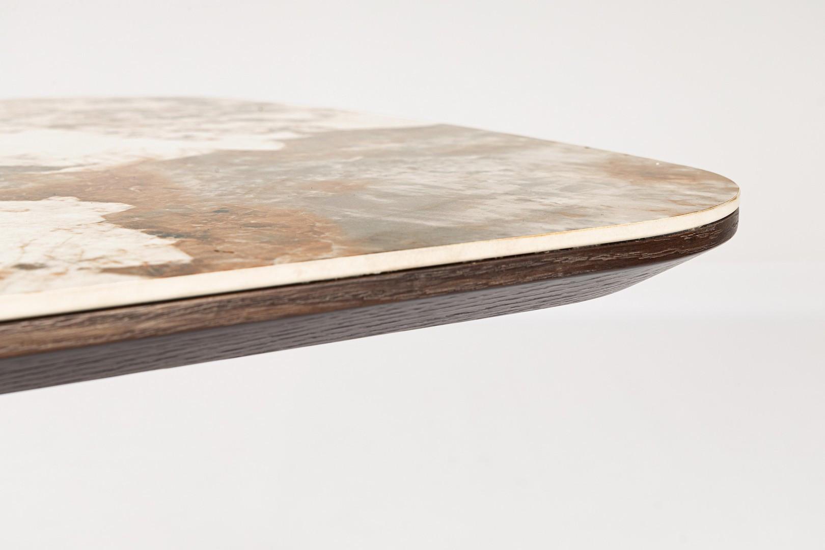 Piano in ceramica con supporto in mdf e acciaio verniciato a polvere epossidica. base con struttura in mdf impiallacciato legno di noce. base da assemblare.